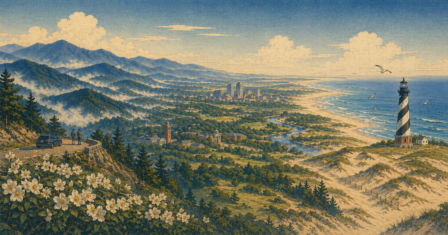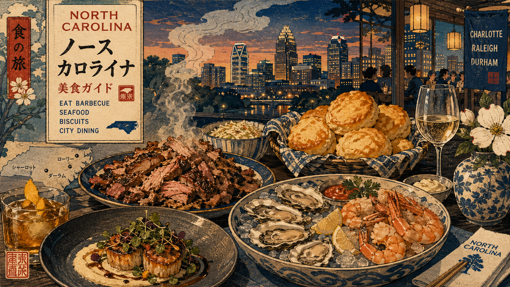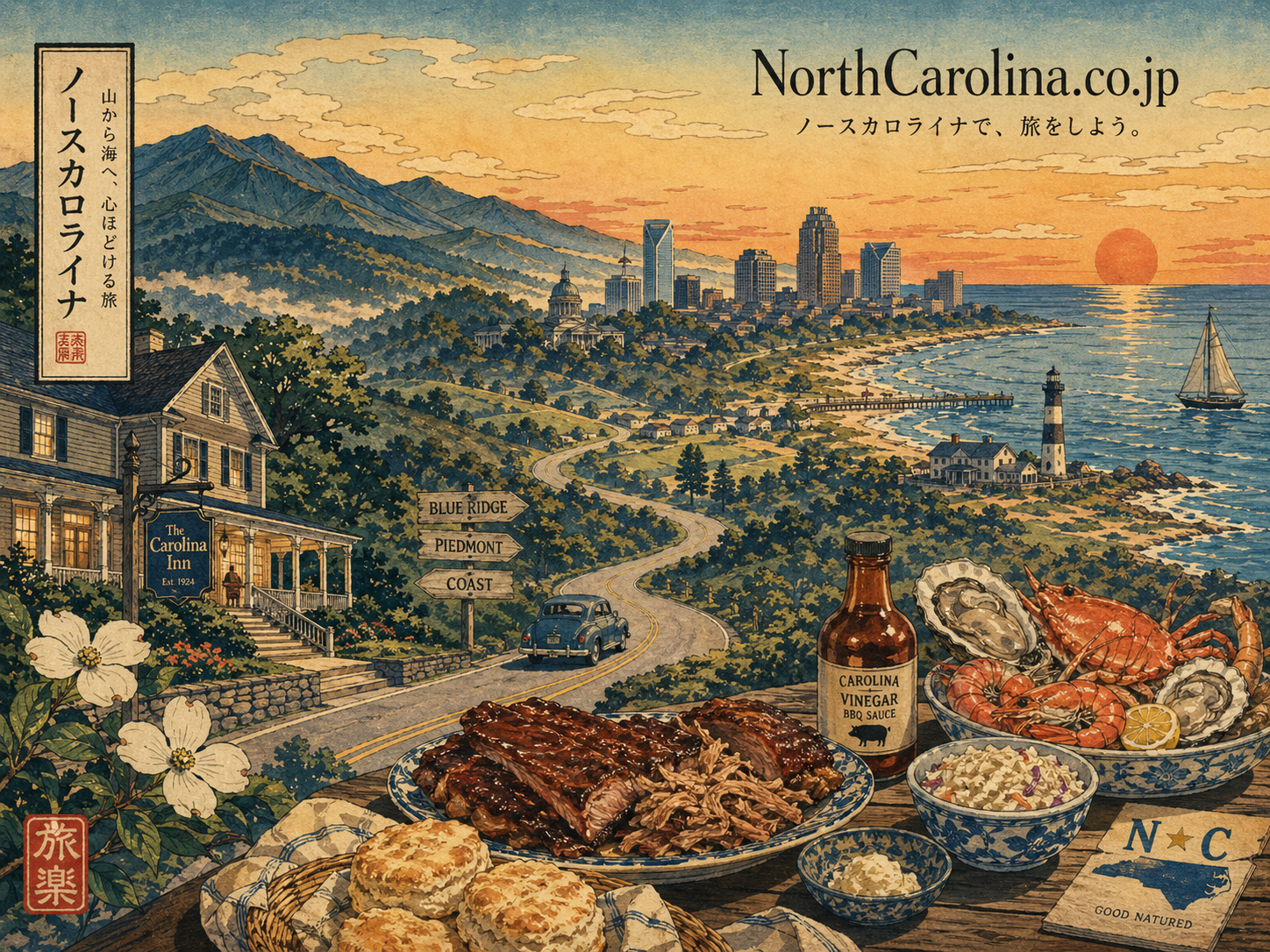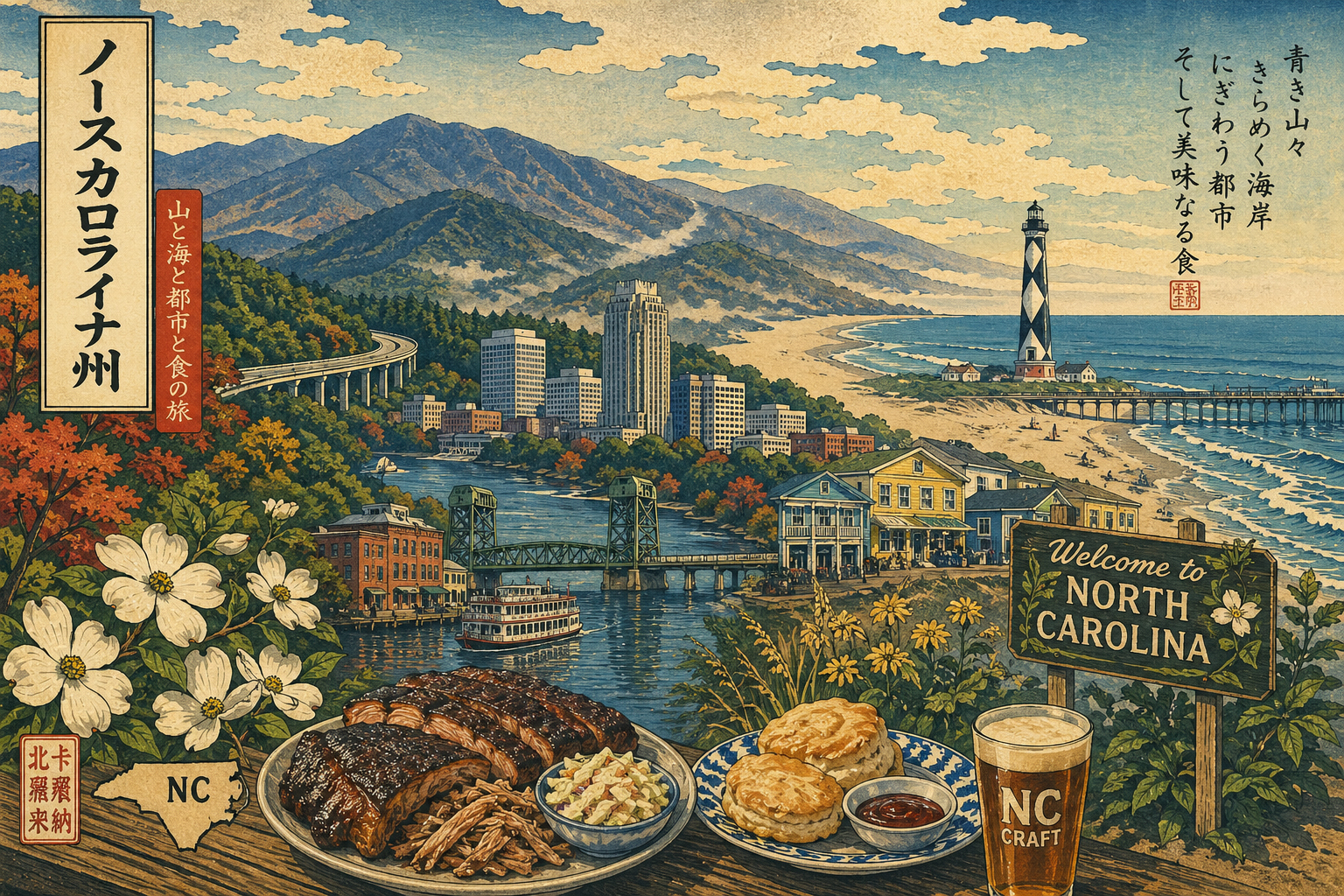 画像はすべてクリックするとフルサイズで開けます。 このギャラリーは、観光写真の一覧ではなく、NorthCarolina.co.jpの編集世界を支える画像の部屋です。 旅の入口として、また各ページのビジュアル確認として使えます。