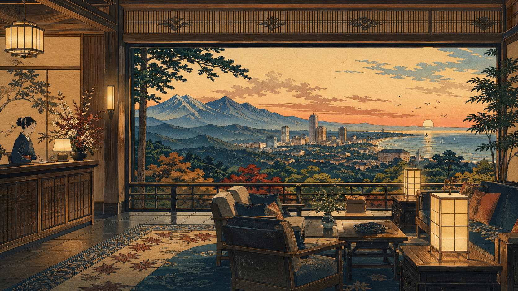 まずはテーマ別の部屋へ。 山、海岸、都市、研究都市、食と宿、特集アートを分けて、見たい世界へすぐ入れるようにしました。